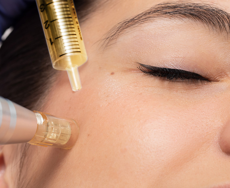 2. Microneedling is performed to stimulate the skin’s natural rejuvenation.